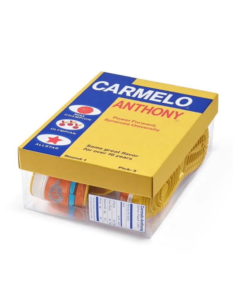 虎扑09月11日讯 Jordan Brand为旗下签约球员卡梅罗-安东尼打造了一双个人专属配色Air Jordan 1 Low,配色灵感来自马里兰经典特色调料老湾海鲜调味粉(Old Bay Seasoning),同时鞋盒样式也来自调味粉的包装。