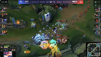 比赛第21分钟,爆发厄塔汗团战,BFX打出1换2